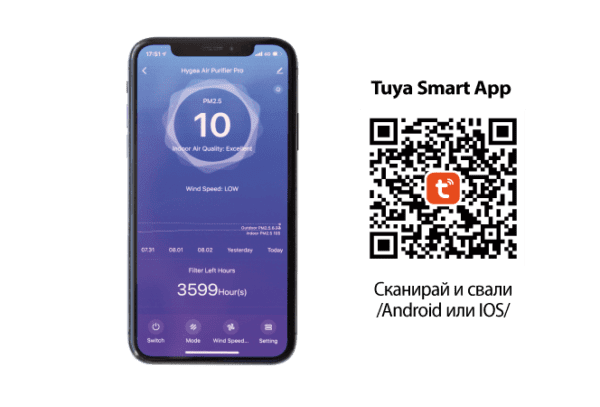 Инструкции за работа с приложението tuya smart и hygea air pro